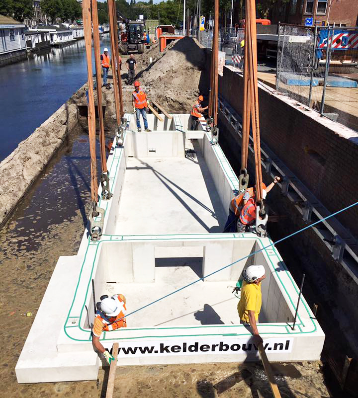 In opdracht van D.C. van den Boogaard heeft CELLA Kelderbouw drie prefab kelderbakken geleverd voor de onderbouw van een powerstation voor de HTM.