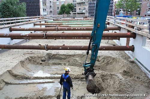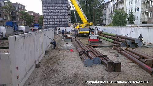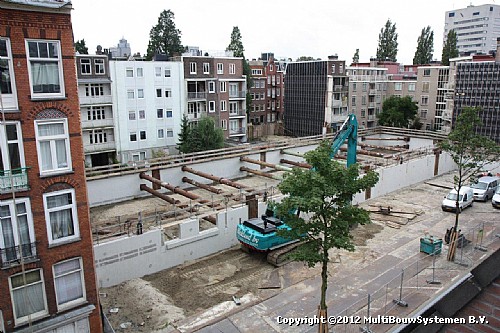 Ymere en Dura Vermeer werken met MBS trillingvrij en geluidsvrij een kelder van 60,5 x 23 meter (L-vorm) de grond in aan de Derde Oosterparkstraat in hartje Amsterdam.