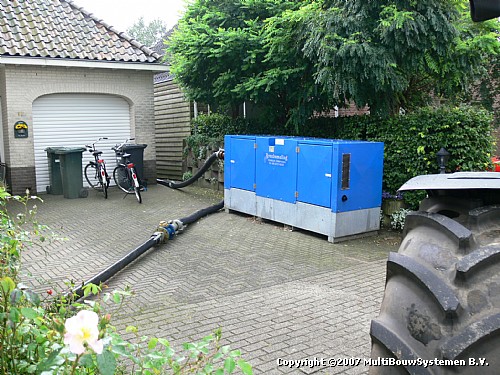 De hoge grondwaterstand in Harderwijk zorgt voor een extra zware bronbemaling tijdens het afzinken.