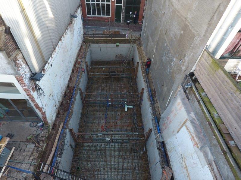 In de Sint Nicolaasstraat in Amsterdam, een straatje van maar 3 meter 10 breed is in samenwerking met hoofdaannemer Firma De Nijs en constructeur Firma Pieterse een afzinkkelder gerealiseerd.
