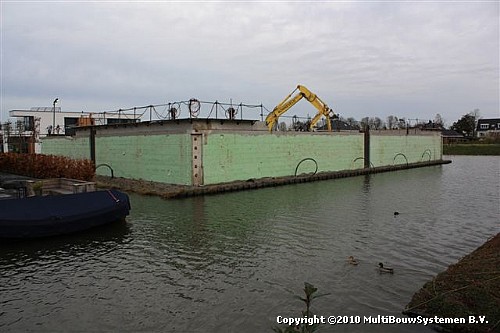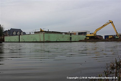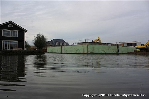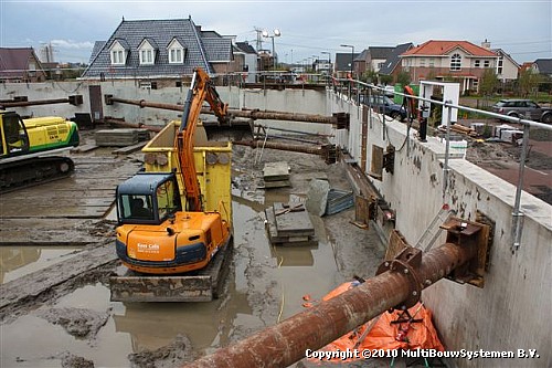 Voor Mercey Rotterdam V.O.F. hebben wij op een kavel van 38 x 32 meter een kelder van 37 x 31 meter, strak langs de waterlijn, gebouwd.
