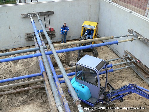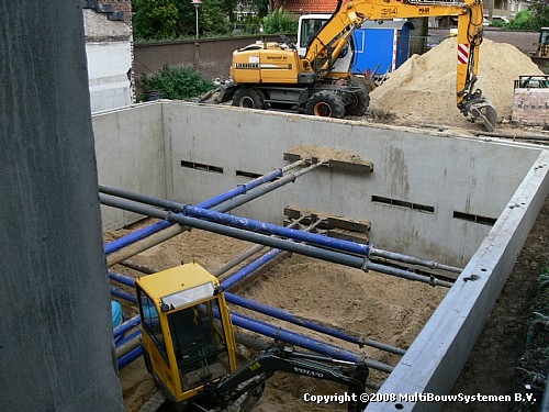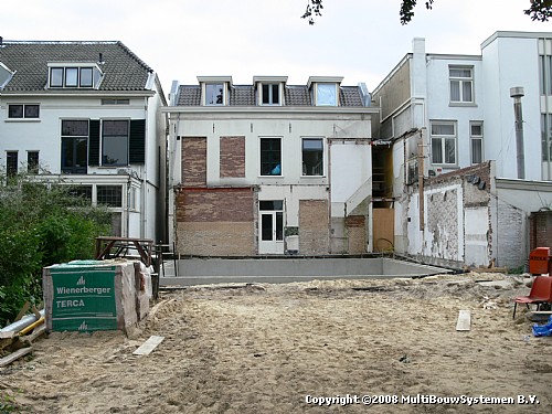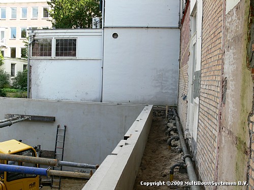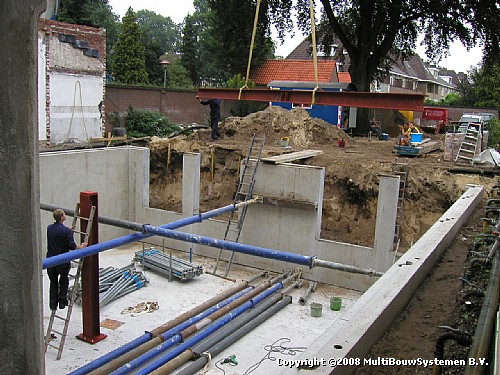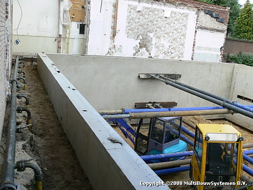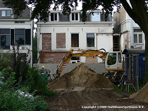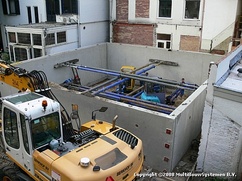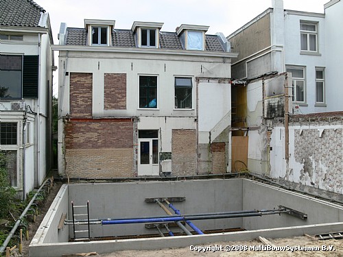 Een afzinkkelder van 11 x 11 meter (3 meter diep) wordt afgezonken tussen drie hoge kantoorvilla’s uit de 19e eeuw, deze zijn op staal gefundeerd.