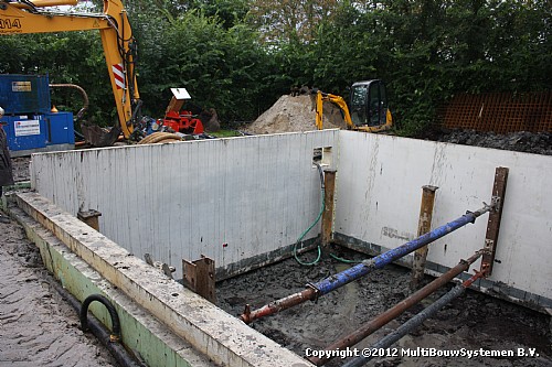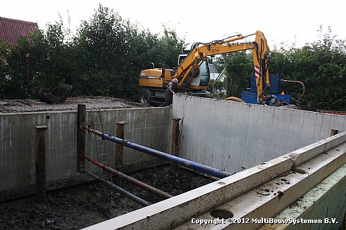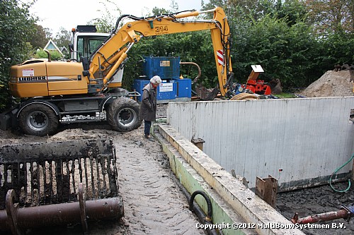 Een vrijstaande vakantiebungalow van 960 x 830 cm hebben wij onderkelderd met een nieuwe kelder op stalen buispalen. De veenhoudende duingronden zijn riskant voor ongefundeerde belendingen. Het afzinken en de korte bemaling hebben geresulteerd in een geslaagde en snelle afzinkactie.