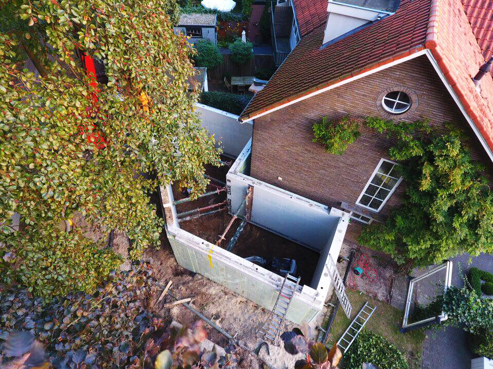 Aan de Roemer Visscherlaan in Zeist realiseert CELLA Kelderbouw een afzinkkelder. De kelder dient als ondergrondse uitbreiding bij een bestaande woning.