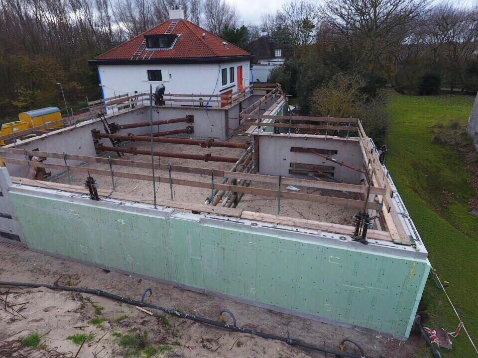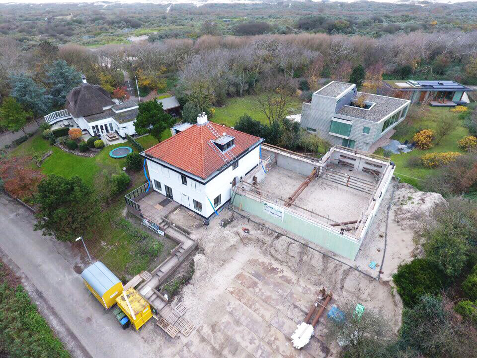 In de duinen in Hoek van Holland realiseert CELLA Kelderbouw direct naast een bestaande villa een grote woonhuiskelder.