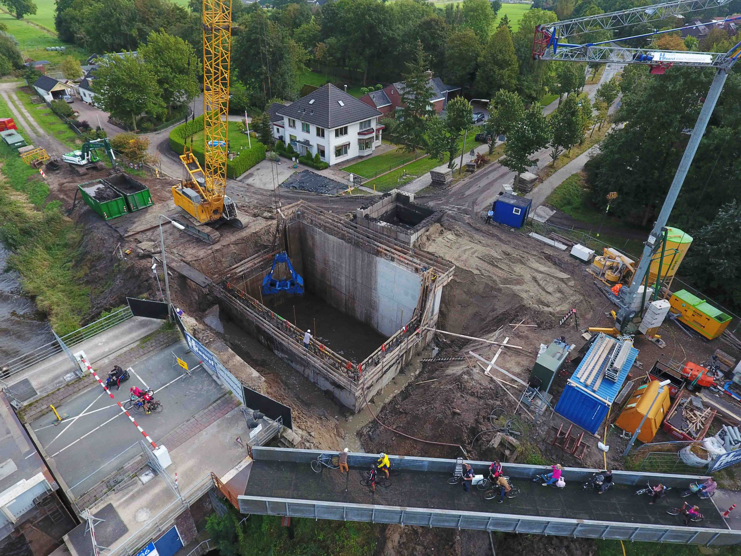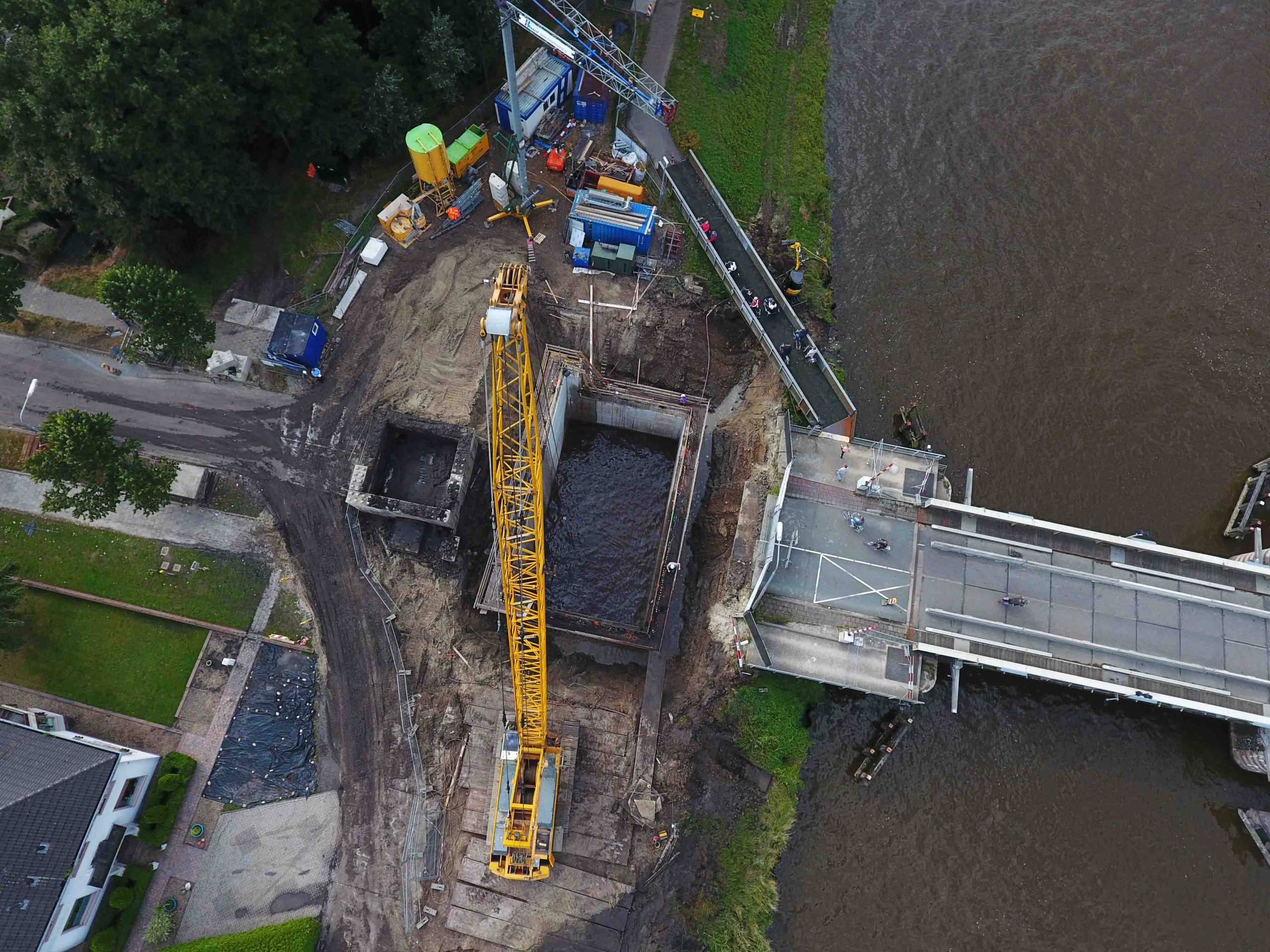 In Zuidhorn / Noordhorn wordt een tafelbrug vervangen omdat de vaarweg een andere klasse krijgt (breder en dieper). De caissons van de huidige brug worden vervangen door grotere caissons. De caissons dienen als fundament voor de brug en de installatie van alle techniek van de brug zoals gewichten en hydrauliek. CELLA Kelderbouw levert bij dit project de expertise van het afzinken van de caissons inclusief hydrauliek, ankers en het stempelraam. De caissons wordt ongeveer twaalf meter hoog en worden in twee fases vijftien meter diep afgezonken. Bijzonder aan dit project zijn de diepte en de lastige potklei op 7 meter diepte.
