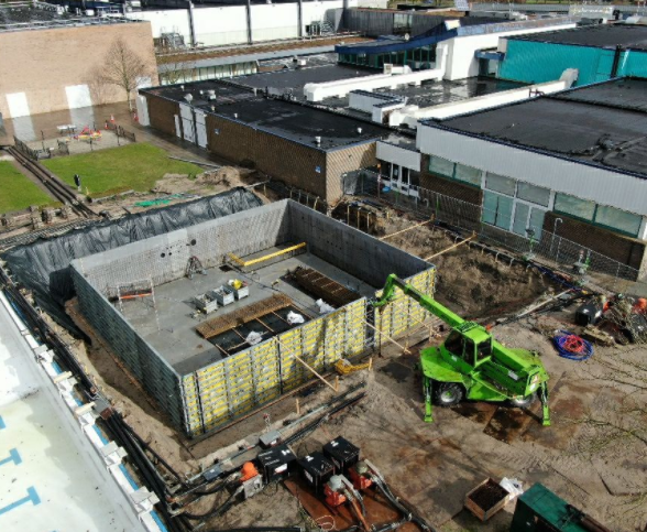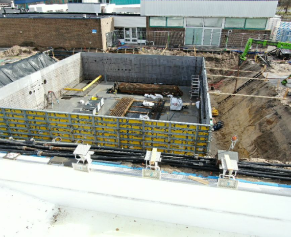 Harderwijk techniekkelder voor zwembad door CELLA Kelderbouw in het werk bekist, gewapend en gestort met bronbemaling en graafwerk inclusief waterdichte dakafwerking.